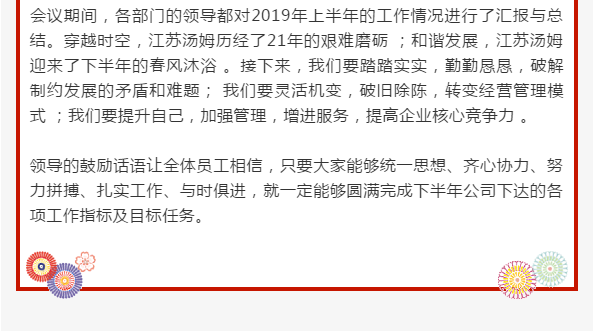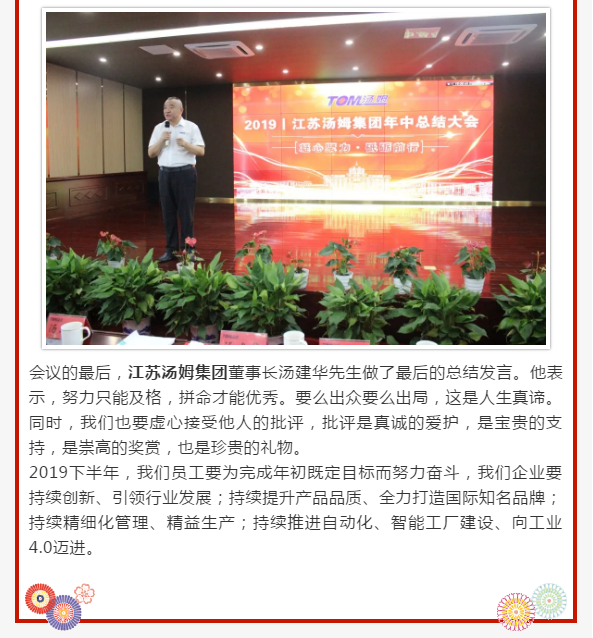 江蘇湯姆集團2019年中總結大會圓滿落幕|凝心聚力 砥礪前行