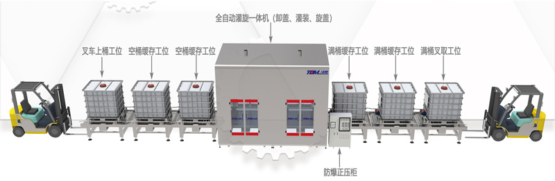 IBC噸桶、200L桶復合智能灌裝線案例
